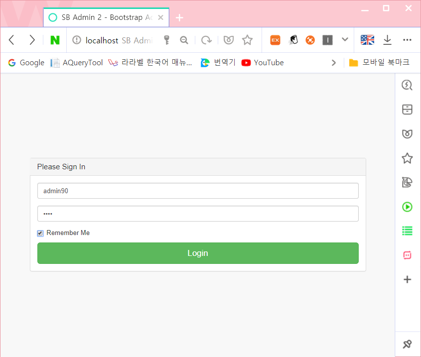 자동로그인은 로그인 화면에서 선택해서 처리되므로, 체크박스의 형태로 구현하고 <input> 태그의 name 속성값은 remember-me 이다.